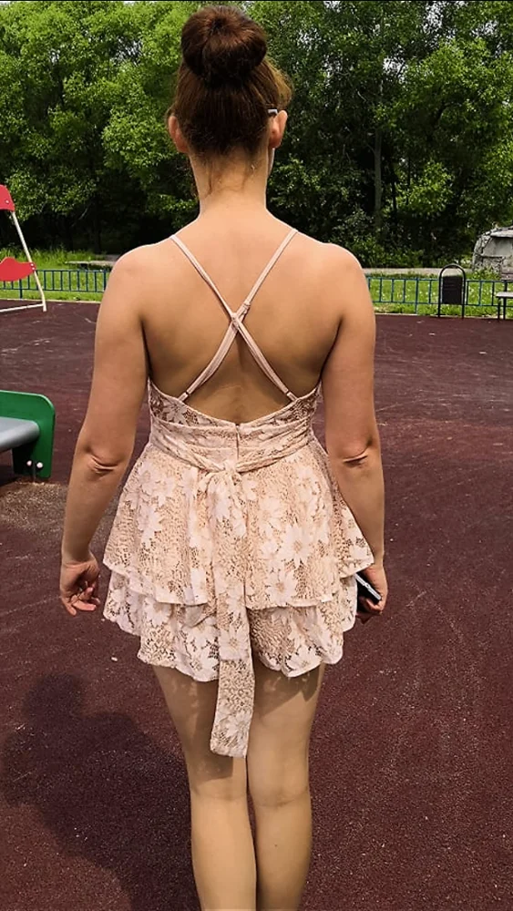 I liked it. Description and photo of the seller corresponds. At my height of 168, the parameters 91x69x93 ordered the size of m. The size approached, slightly loose, as it should. Short very. On the chest sits well. You can make the straps more freely, it will become longer, but the chest is stronger then you can see, i'm so shy. And i really liked everything, as i expected. Threads stick out somewhere, but for me it's not a problem, i can use scissors. The order came pretty quickly, weeks in three. Thank you seller! Photo in daylight